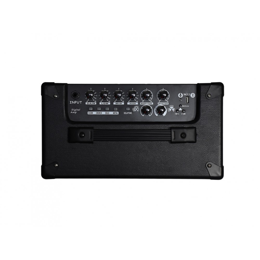 The Fantasy 20 delivers 20 watts of output through a special design 8" Coolmusic custom speaker.This advanced DSP smart guitar amp has compact size, and good looking, is perfect for home practice and band rehearsals alike.There are 4 lead amp model that includes Clean, Crunch, Solo and Metal. also 6 digital effects,including reverb, delay, phaser, flanger, chorus andtremolo. Build in MP3 player and bluetooth allow you play music while playing guitar. 4 memory channels store differ presets that you prefer.