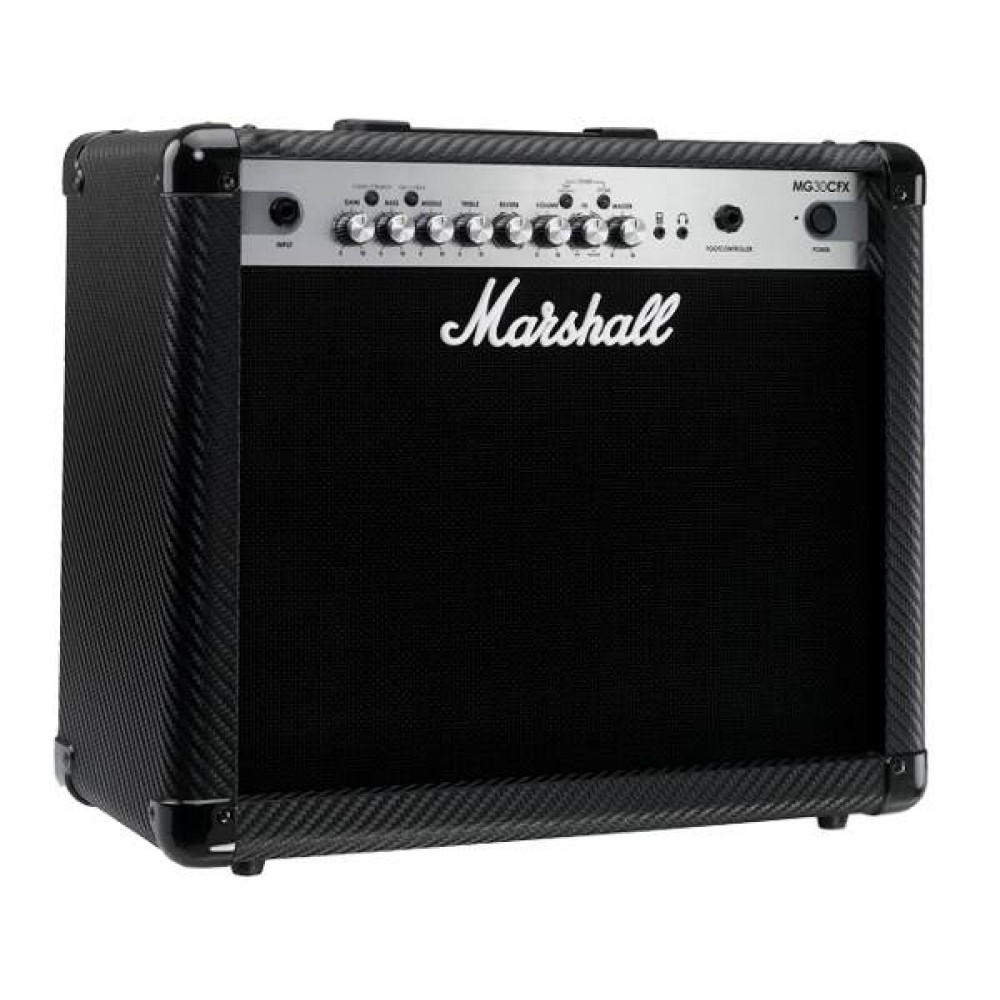 Marshall's MG30CFX combo amplifier packs more useful features than you'd usually expect from a 1 x 10" 30-watt combo. It starts with pure Marshall tone, tailored to your liking with the 3-band EQ. The MG30CFX sports four programmable channels - Clean, Crunch, Overdrive 1, and Overdrive 2. Dial in your tone, then save it for easy recall later. The tone is lively and in your face, as you'd expect from a Marshall, and you can add even more pizazz with the built-in effects. You get chorus, flange, phaser, delay, plus a separate reverb that can be combined with any other effect. And you can take complete control of the MG30CFX with the optional MG Footcontroller (sold separately). If you need an equally capable amp for practice and recording, you'll love the Marshall MG30CFX.